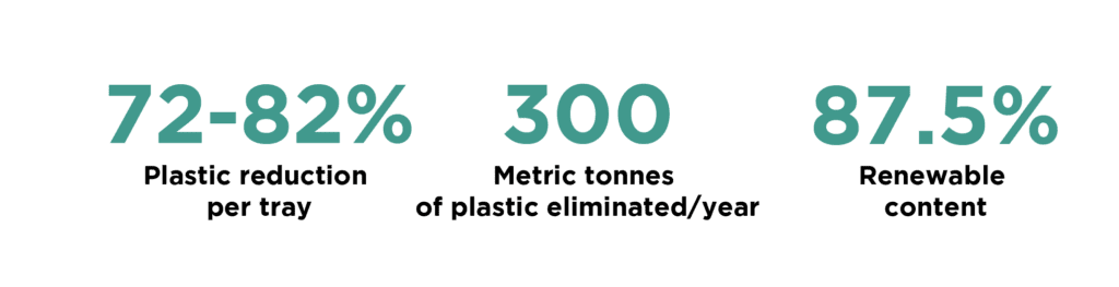 As the PaperSeal™ Shape tray reduces plastic by 72-82% per tray, the project has resulted in the elimination of approximately 300 metric tonnes of plastic a year from Sainsbury’s supply chain. It’s comprised of nearly 90% renewable raw materials, and is recyclable in household waste streams according to the UK’s OPRL recycling guidelines.