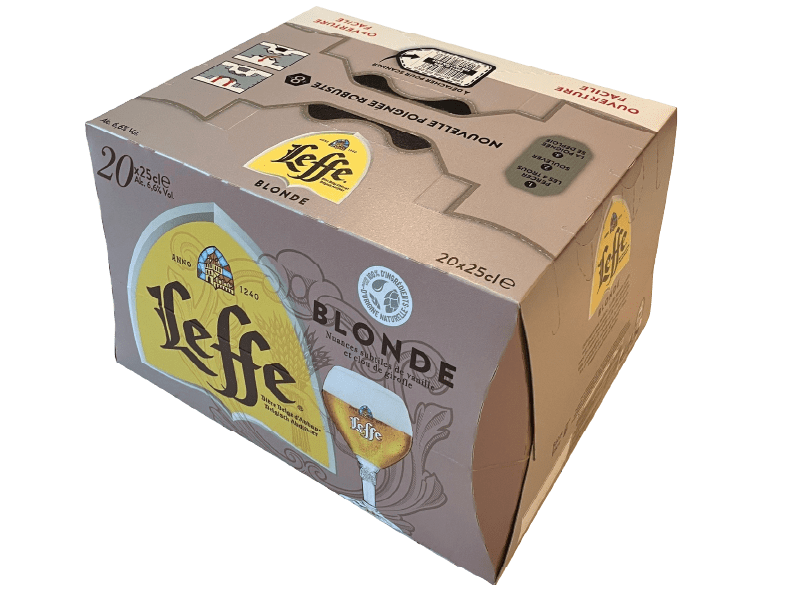 AB InBev wanted to solve this challenge for their multipack of Leffe beer glass bottles and worked with Graphic Packaging to develop a pack that securely holds 20 x 330ml glass bottles, is operationally efficient, strong through the supply chain, convenient, and recyclable, while supporting both brand sustainability goals and regulatory compliance.